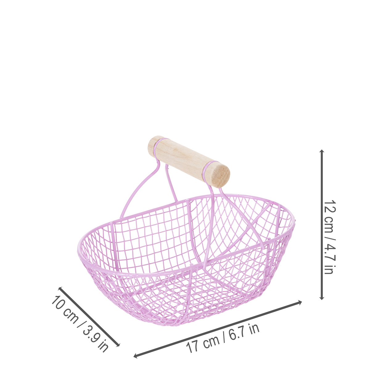 Tilføj et strejf af stil til dit hjem! Denne nostalgiske trådkurv med træhåndtag imponerer med sit minimalistiske design og harmoniske lyserøde og lilla nuancer. De omhyggeligt fremstillede metalstativer skaber et luftigt design, der er både dekorativt og praktisk. Brug den i køkkenet til stilfuldt at fremvise dine friske frugter og grøntsager, eller på din kommode til pænt at organisere tilbehør og kosmetik.