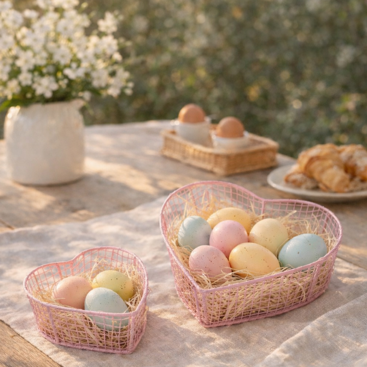 Skab en romantisk, men organiseret atmosfære med disse smukke hjerteformede trådkurve. Uanset om de bruges som en dekorativ detalje på bordet, til opbevaring af småting eller som et stilfuldt gavesæt, bringer disse hjerteformede metalkurve kærlighed og orden til dit hjem. Kurvene er lavet af robust metal og fås i bløde lyserøde og lilla toner. De er perfekte til brug i opholdsrum eller overdækkede udendørsområder og er det ideelle valg til romantisk bordpynt ved særlige lejligheder såsom bryllupper, Valentinsdag eller fødselsdage.