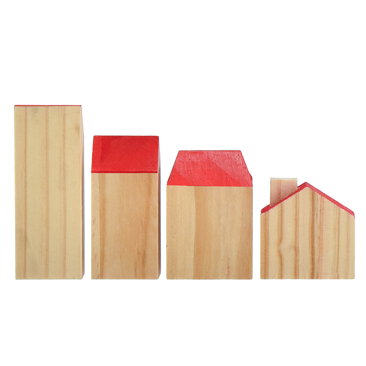 De små dekorative huse minder om skandinavisk stil og kombinerer traditionel inspiration med moderne design. Træhussættet indeholder fire stykker i forskellige størrelser, alle lavet af naturligt træ og med slående røde tage. Disse rustikke huse er alsidige og tilbyder noget for enhver dekorationselsker.