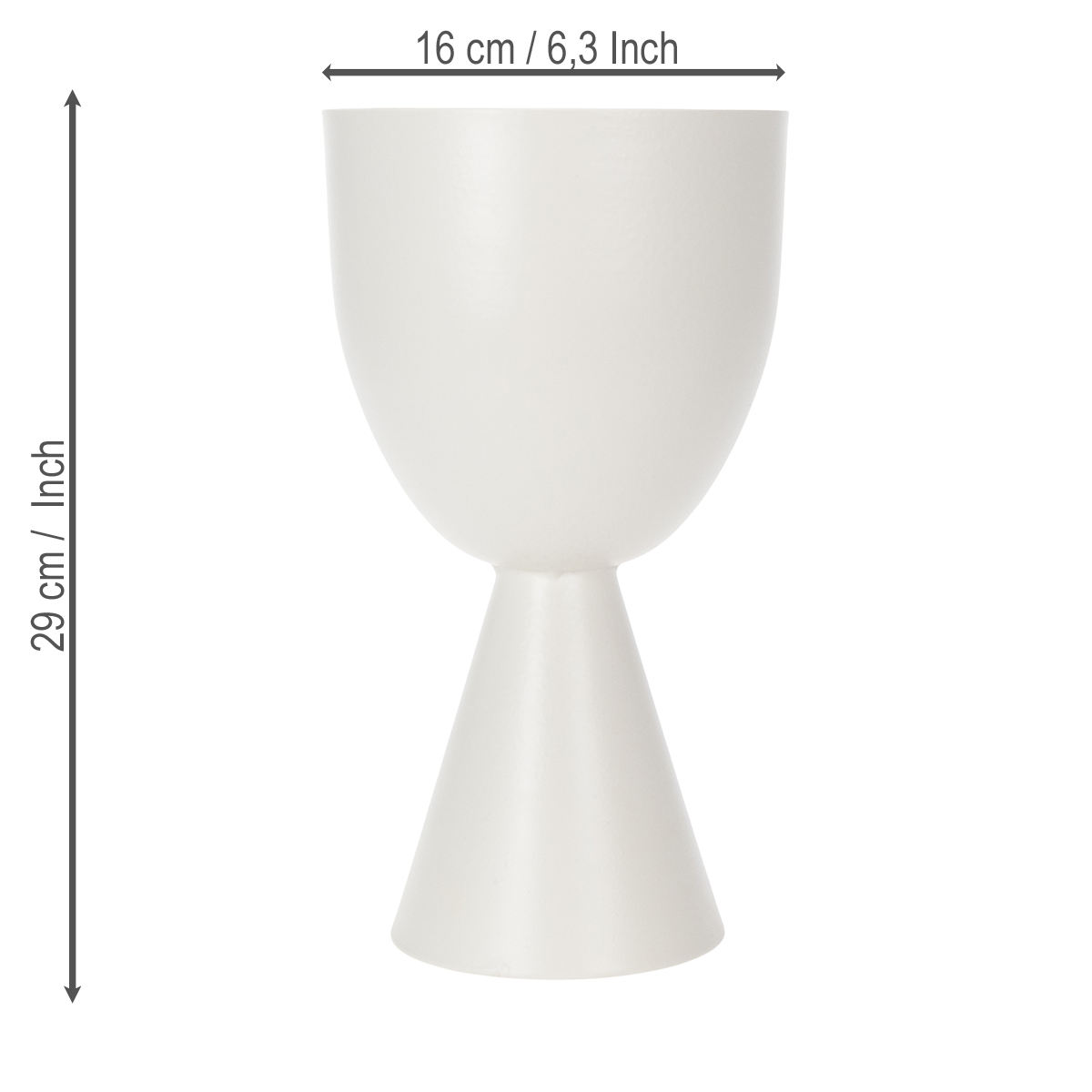Dette hvide dekorative element er ikke kun visuelt slående, men også overraskende alsidigt. Med en diameter på 16 cm og en højde på 29 cm er det kompakt, men alligevel stort nok til at gøre et indtryk. Har du overvejet at bruge dette trofæ som en stilfuld blomstervase eller en kreativ beholder til tørrede blomster? Oplev selv den harmoniske blanding af funktionalitet og æstetisk design – et sandt aktiv for ethvert moderne interiør.