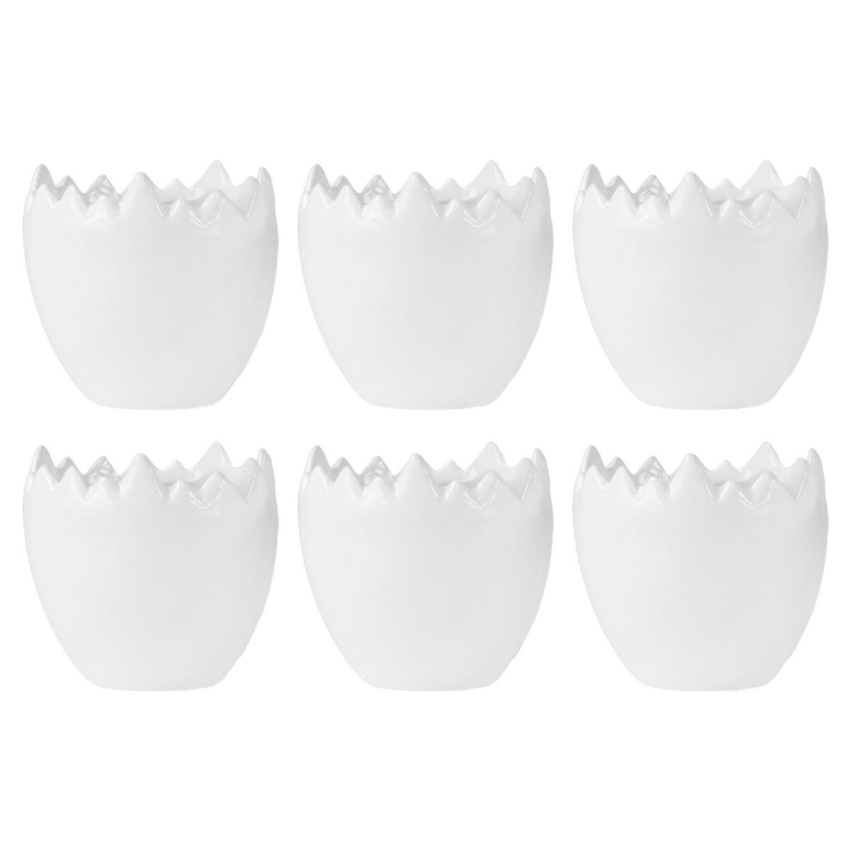 Du modtager de keramiske urtepotter i pakker med 6 stk i hvid. Du kan finde mere bordpynt til påske med æggemotiv i vores omfattende forårs- og påskedekorationssortiment.