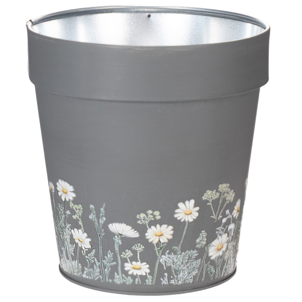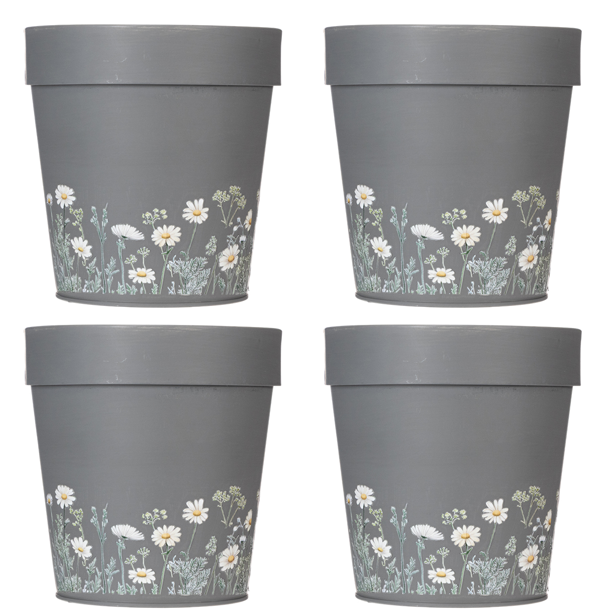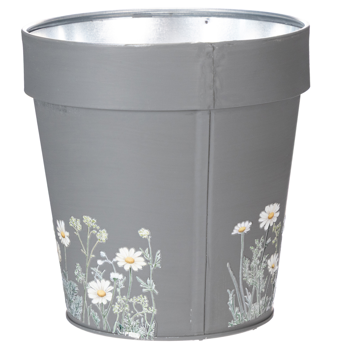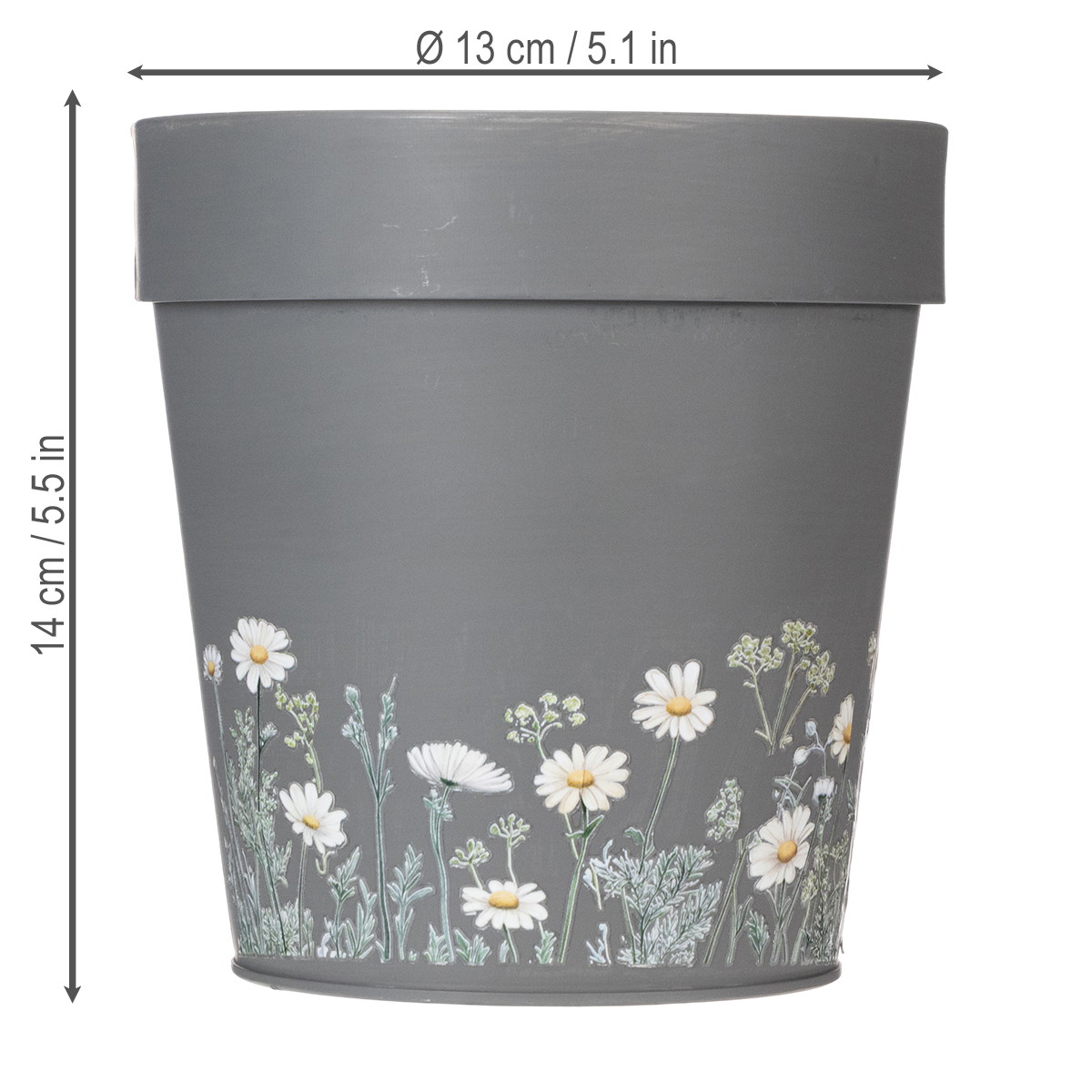 Blomsterdesignet på denne elegante grå urtepotte giver et rent og moderne præg til ethvert miljø. Inspireret af skandinavisk indretning imponerer denne krukke med en vidunderlig blanding af enkelhed og sans for detaljer. De charmerende blomsterprint er tidløse og skaber et harmonisk look med dit interiør. Urtepotten er lavet af robust, men let metal og er holdbar; dog kan fuldstændig rustbeskyttelse ikke garanteres, når den bruges udendørs eller i kontakt med vand.