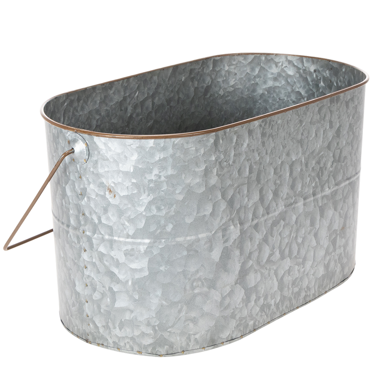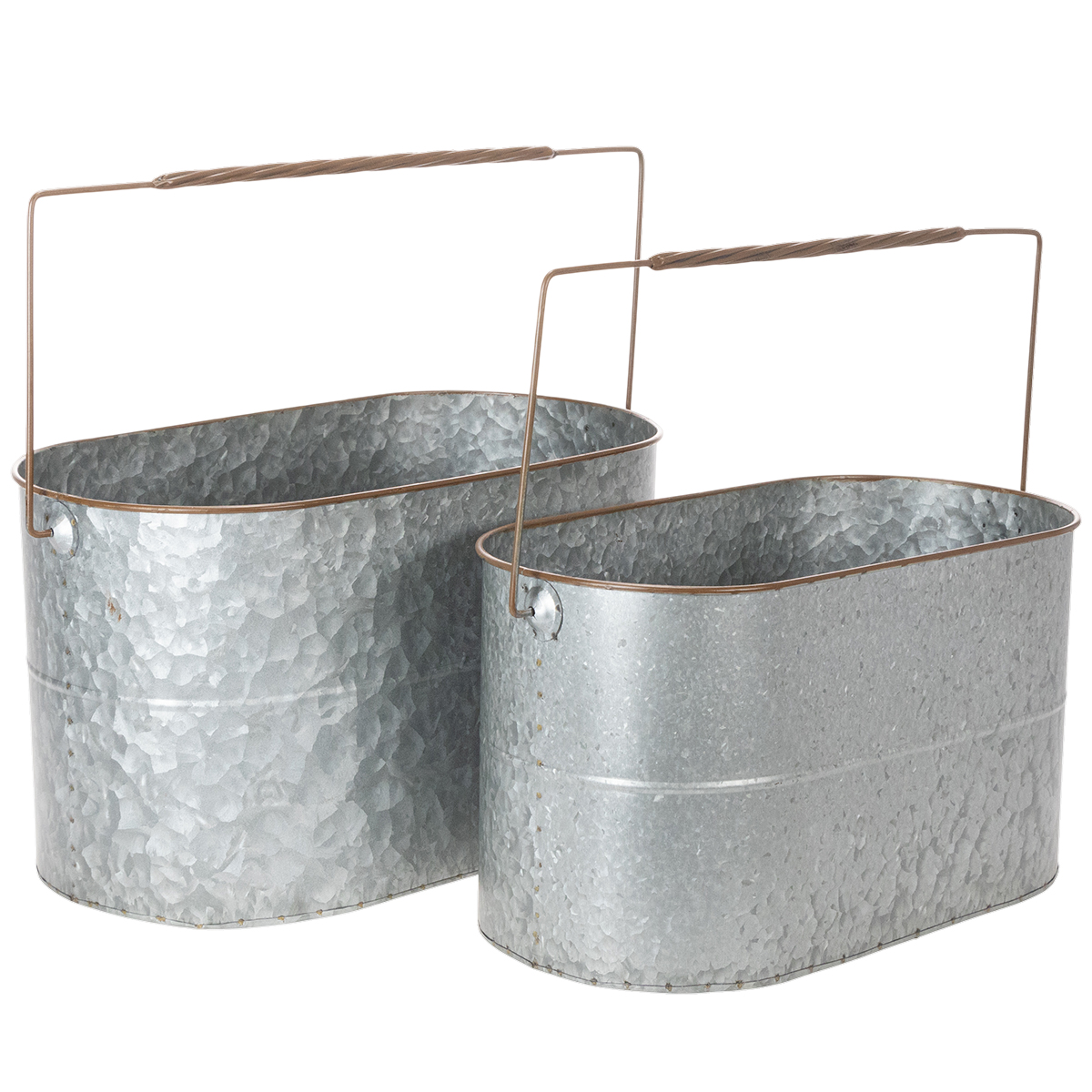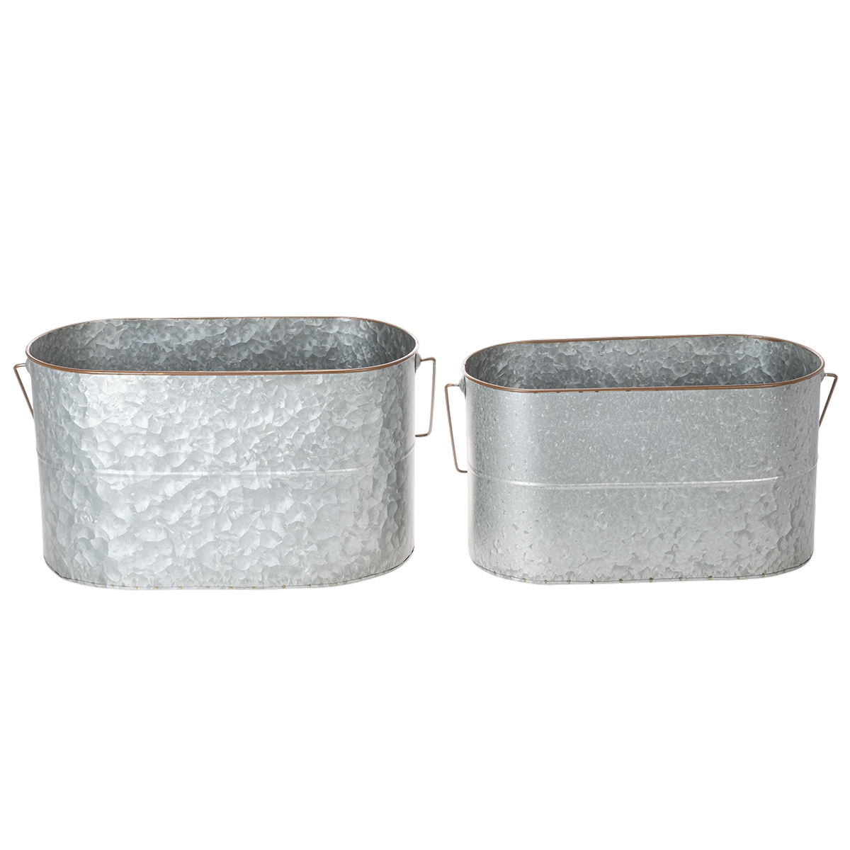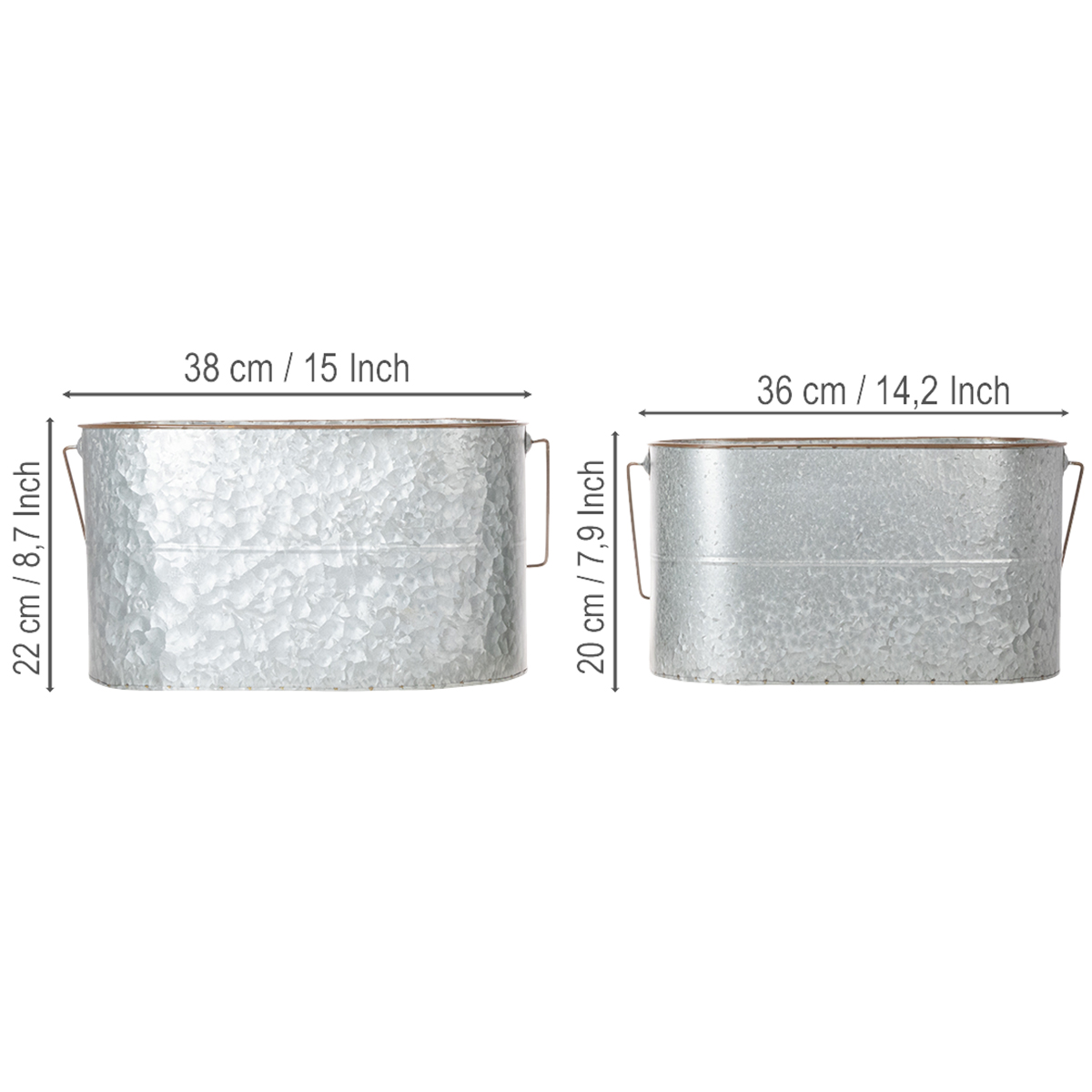 Urtepotte med hank, metalpotte, plantekasse, sølv, brun, H22/20cm L42/40cm, sæt med 2