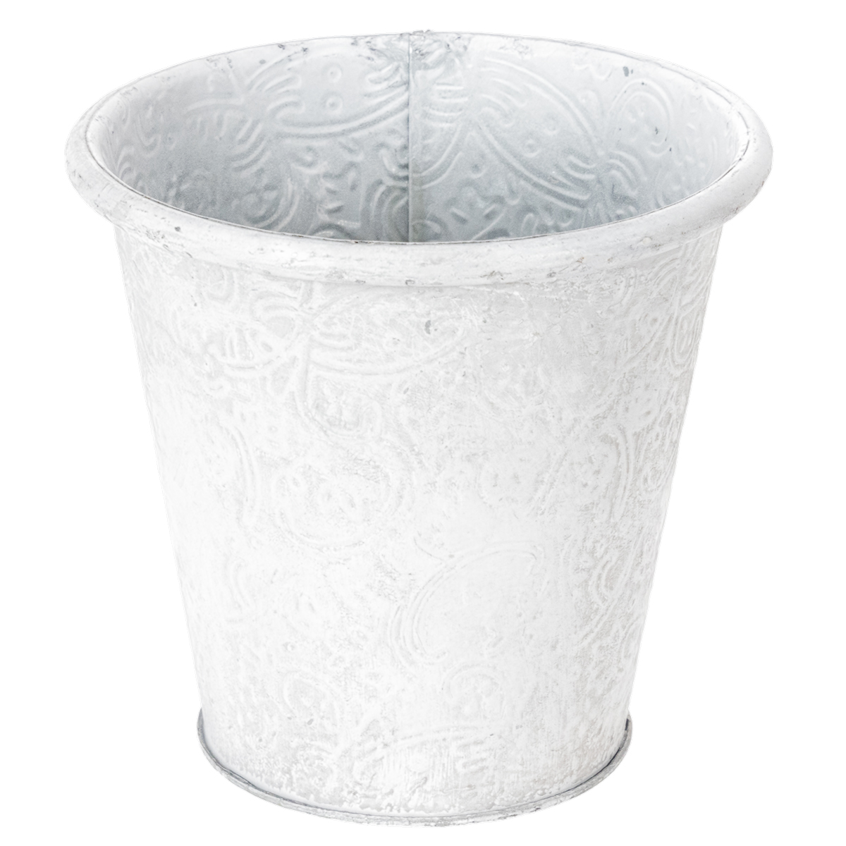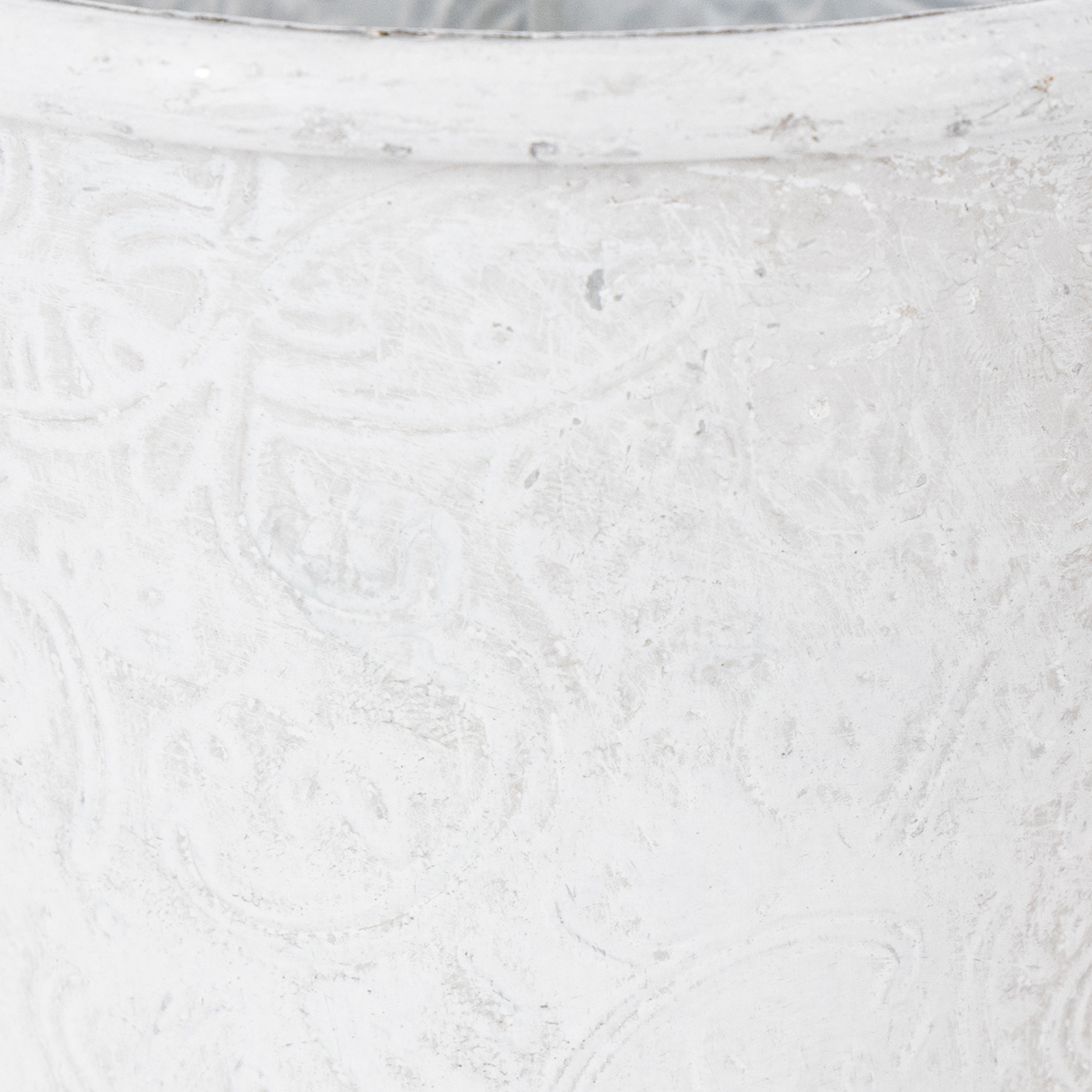 Urtepotte med ornamenter, cachepot, metalbeholder, hvid, Ø15,5 cm, H14,5 cm