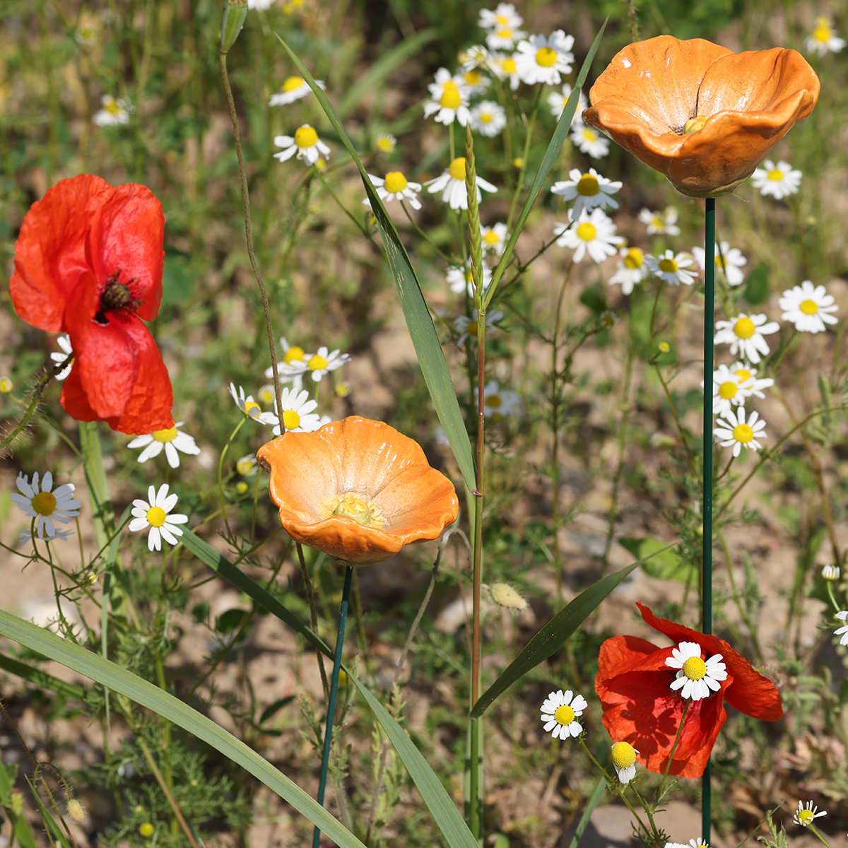 Valmuepæl, keramisk blomst, kærligt detaljeret, til elegante havedetaljer, 42 cm, 4 stk.