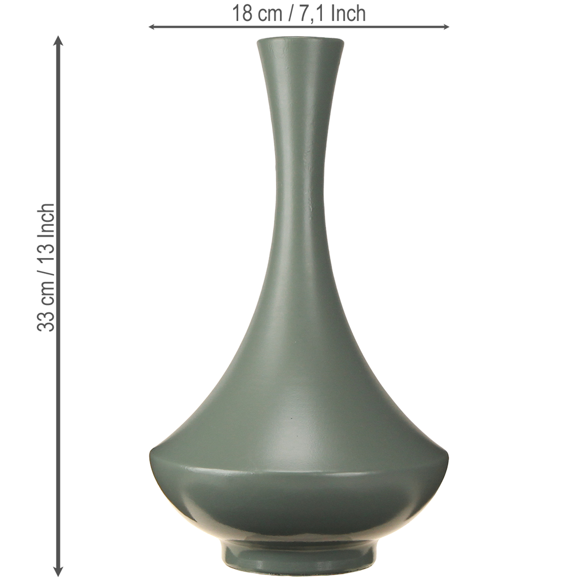 Denne dekorative vase imponerer med sin harmonisk buede form og højkvalitets metalhåndværk. Den matgrønne finish er både underspillet og elegant og understreger dens moderne karakter. Uanset om den bruges som midtpunkt i spisestuen, en dekorativ detalje på en kommode eller et stilfuldt element på et skrivebord, gør dens alsidighed den til et uundværligt tilbehør til ethvert hjem. Med en højde på 33 cm har den den perfekte størrelse til at passe problemfrit ind i ethvert rum, samtidig med at den skaber et statement. De, der sætter pris på en minimalistisk æstetik, vil elske den – men den fungerer også smukt i kombination med andre dekorative elementer.