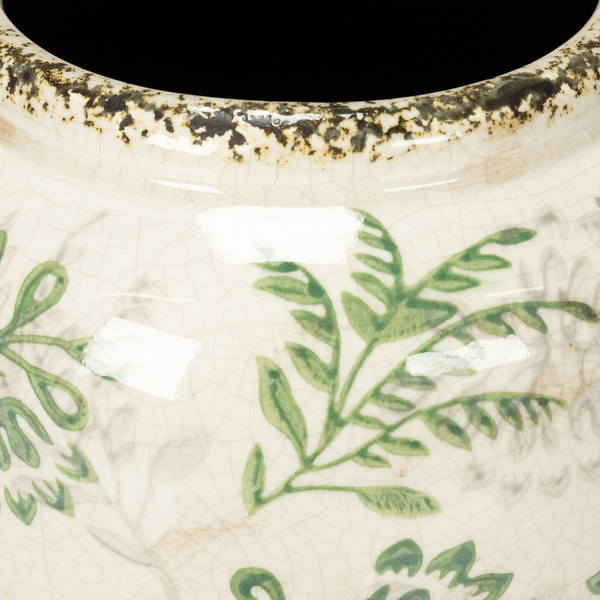 Hvad med at bringe et strejf af naturen til dit stuebord eller din køkkenhylde? Denne keramiske vase med sit fine plantemønster tilføjer et strejf af frisk elegance til din indretning og vil helt sikkert fange alles opmærksomhed. Uanset om den bruges som vase til blomsterarrangementer, til opbevaring af friske krydderurter eller blot som et stilfuldt dekorativt element – dens diskrete design i hvid og grøn gør den til en sand allrounder til ethvert rum. Den er ideel til at fremvise dine yndlingsblomster eller som et højdepunkt i en moderne vintagestil.