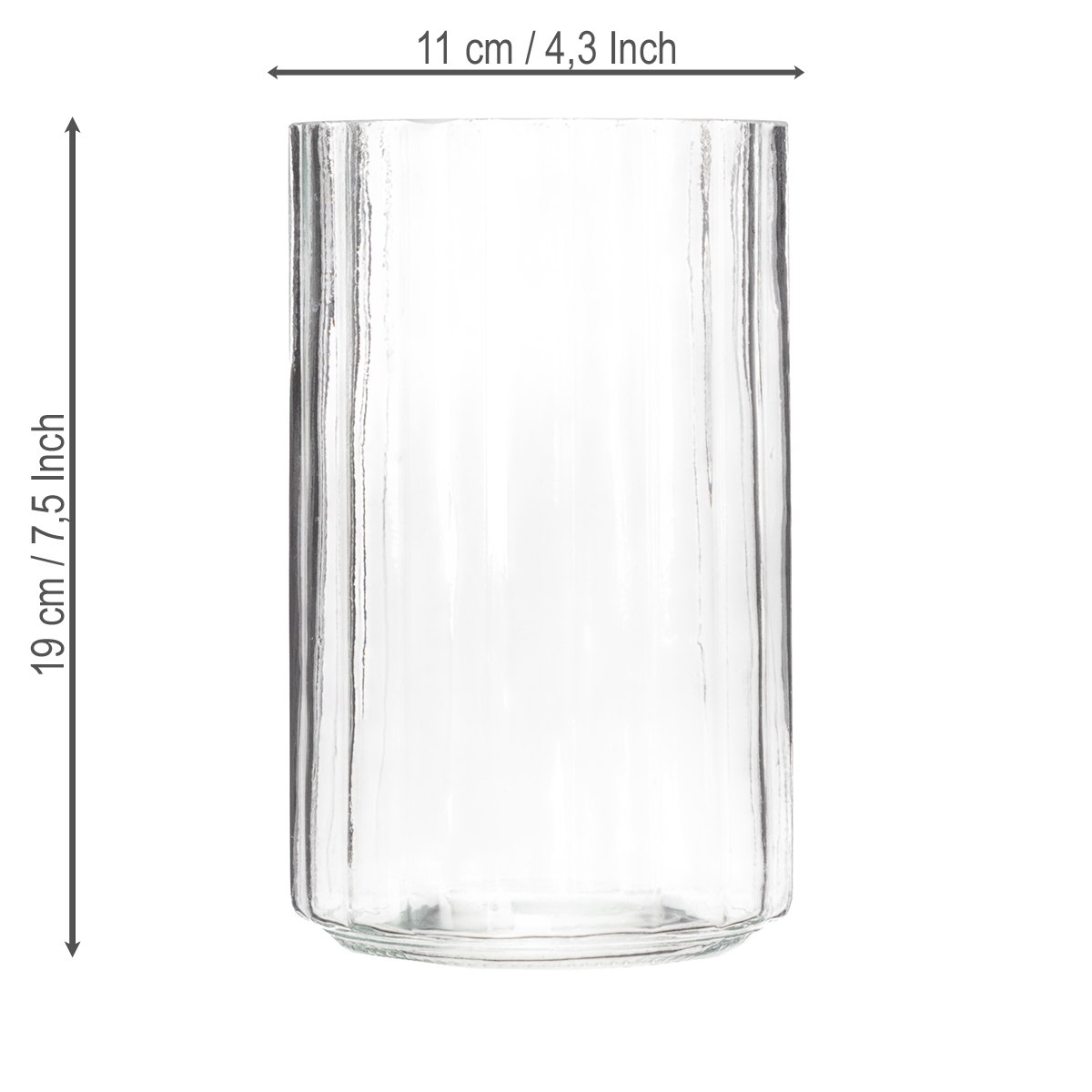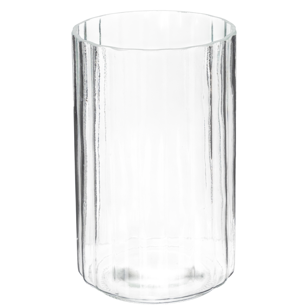 Transparent glasvase med stribet tekstur – praktisk og elegant