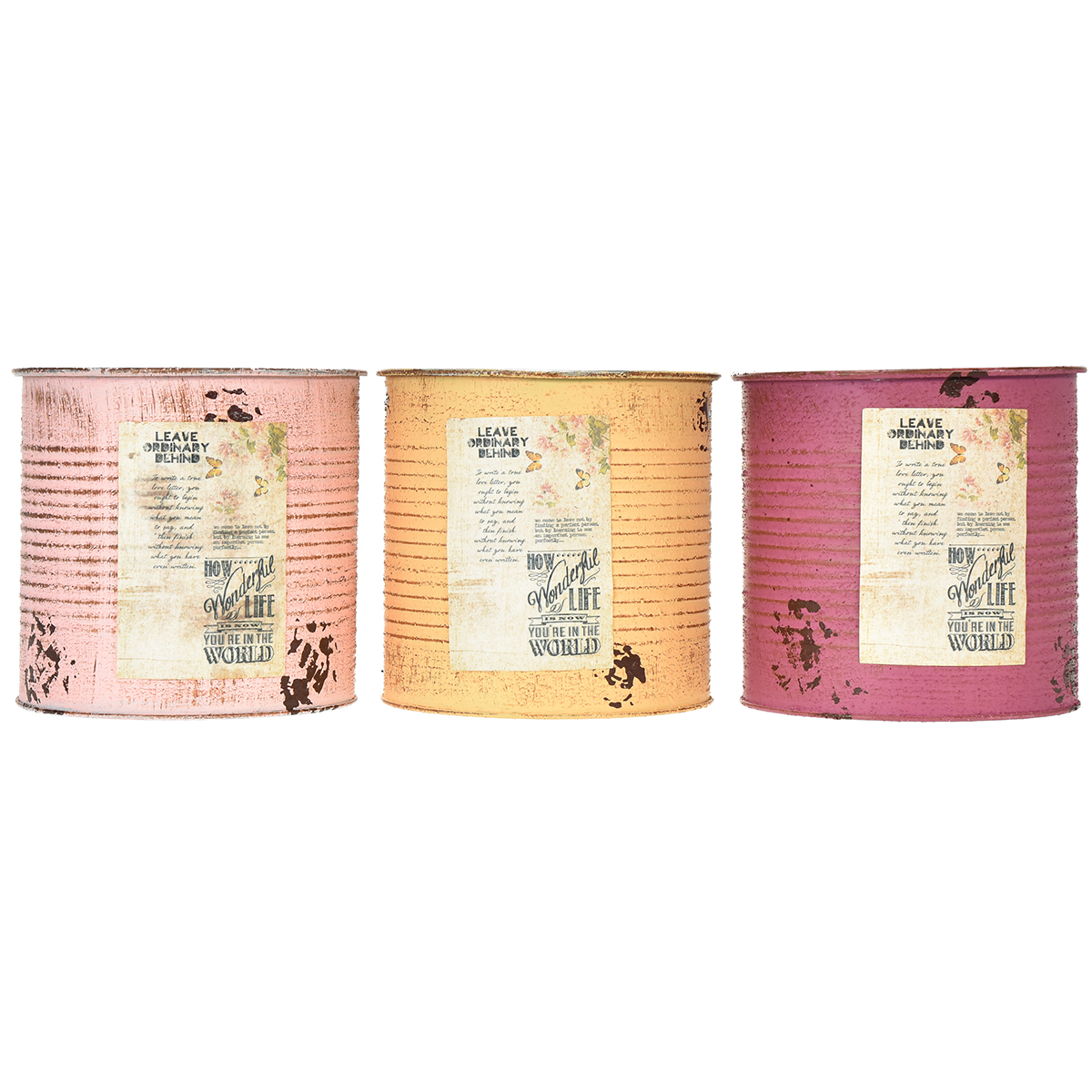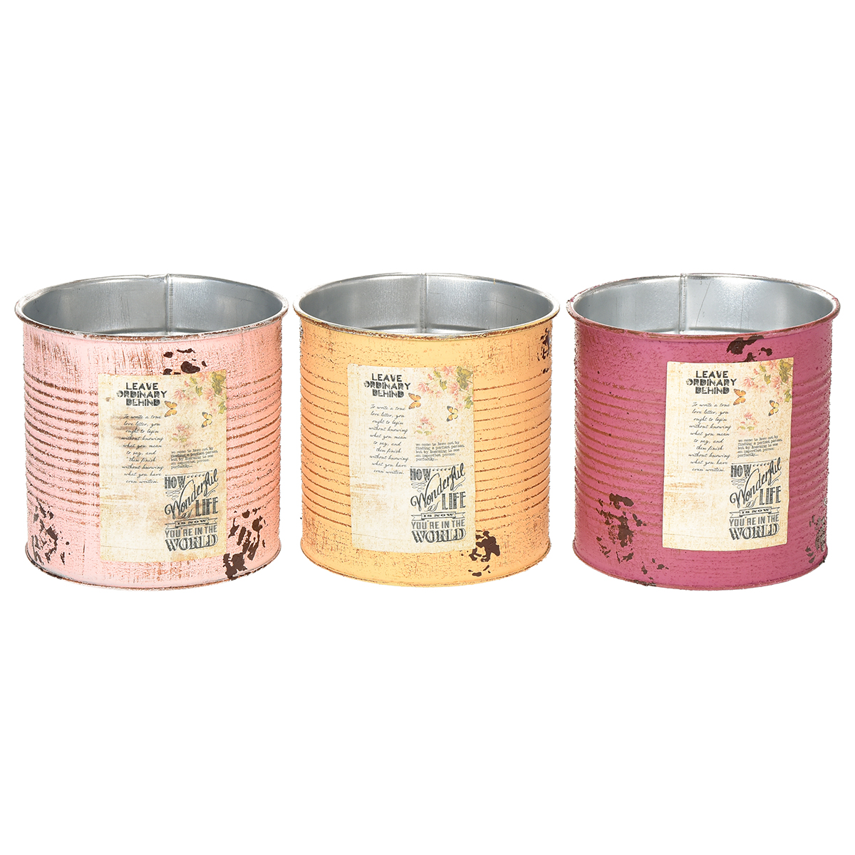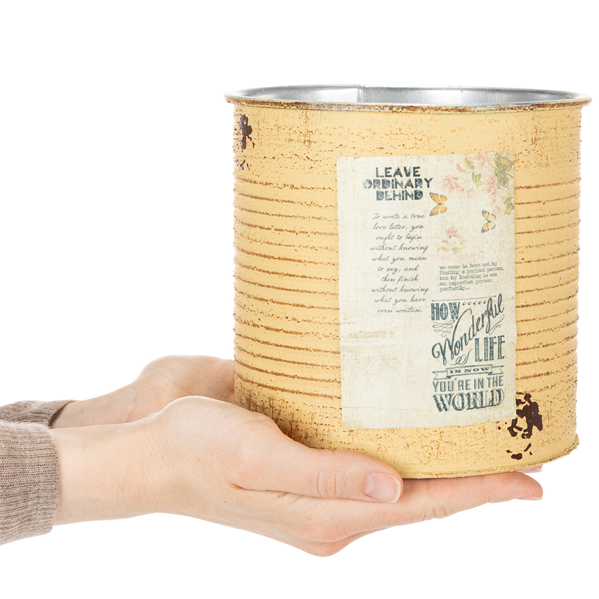 Denne kærligt designede urtepotte i vintage-stil vil gøre ethvert indretningsprojekt til et særligt højdepunkt. Takket være retro-accenterne og de malede rusteffekter skaber disse unikke krukker en hyggelig atmosfære – perfekt til landlig stil eller en rustik indretning. Kombinationsmulighederne er nærmest uendelige – hvad enten det er som en dekorativ krukke til stueplanter, foret med folie som krukke, som en gør-det-selv-vase til tørrede blomster eller som en organizer til kuglepenne og små tilbehør. Hver dåse er 15 centimeter høj og et sandt multitalent.