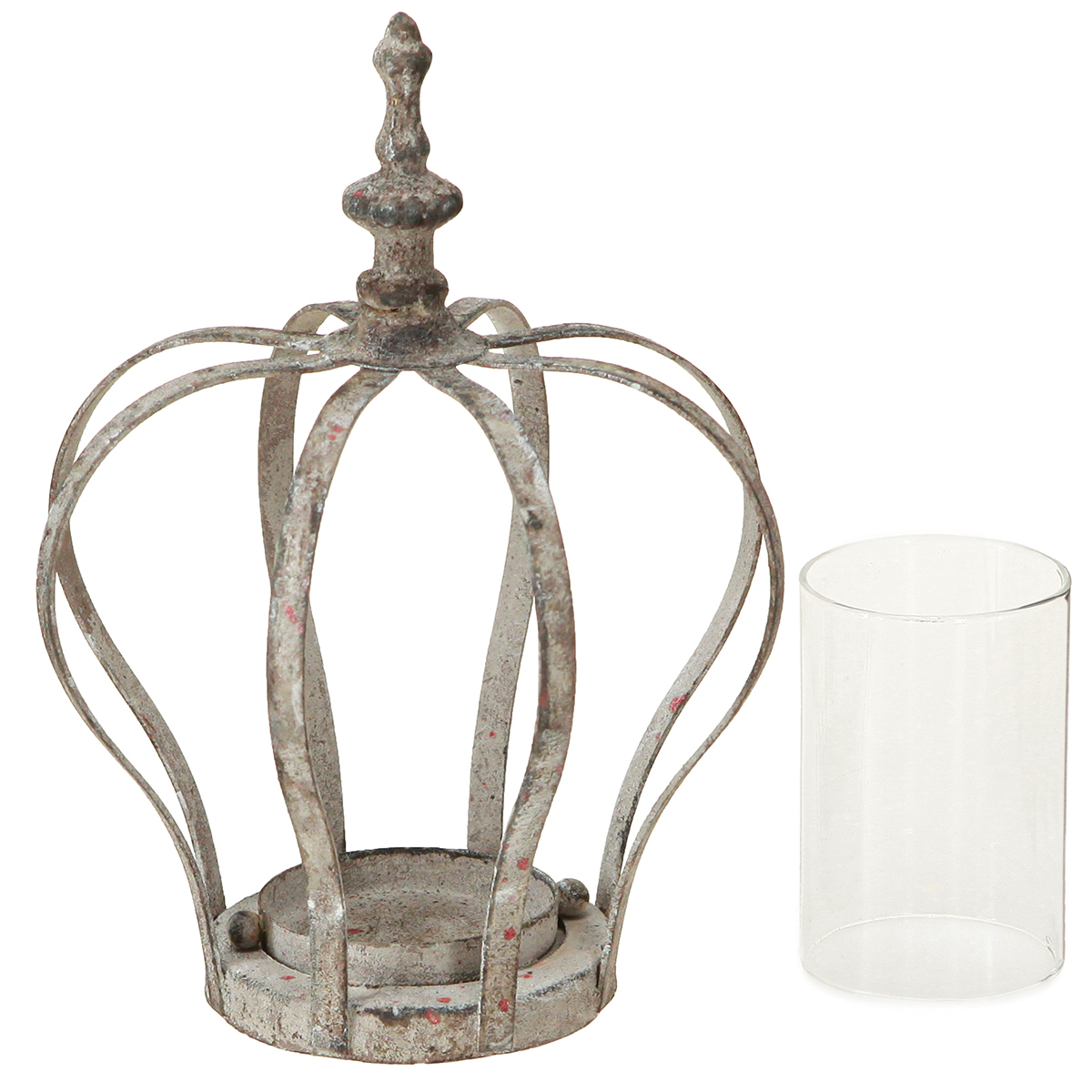 Vintage Lantern Crown Metal med Glas Grå Ø14cm H18,5cm