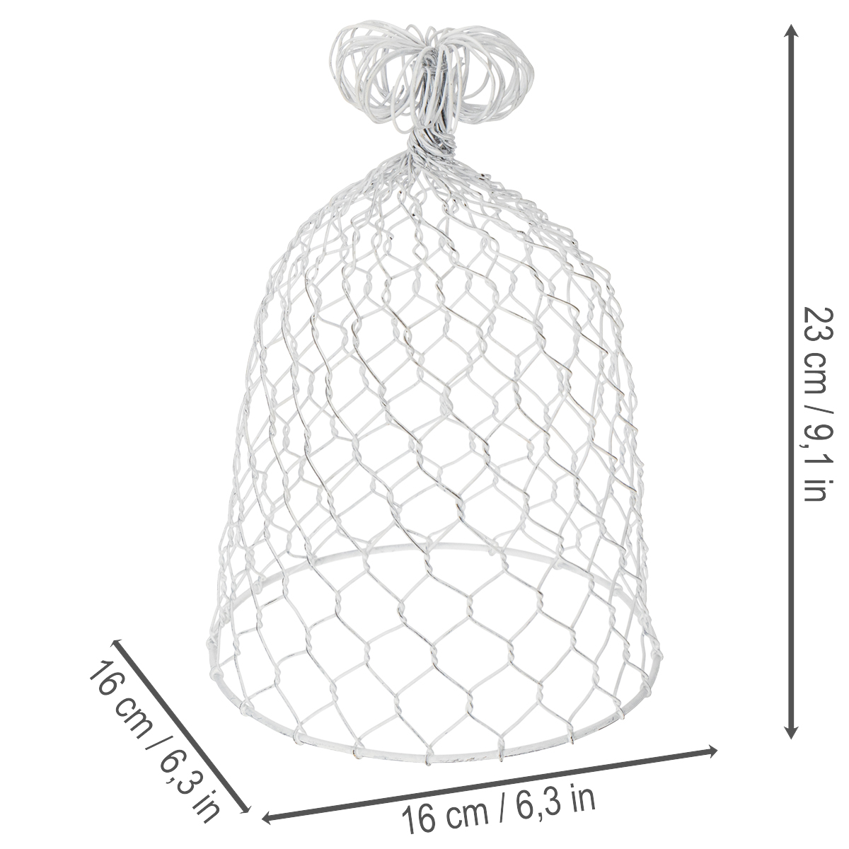 Leder du efter en charmerende tilføjelse til din landlige borddækning? Vores hvide metaltrådsklokke er det perfekte valg! Den kombinerer rustik charme med et strejf af shabby chic og vil være et blikfang ved enhver lejlighed. Uanset om den er midtpunktet på dit festbord, en elegant dækken til små dekorative genstande eller et stemningsfuldt element i dit rumdesign – denne trådtrådsklokke imponerer med sin alsidighed og stilfulde udseende.