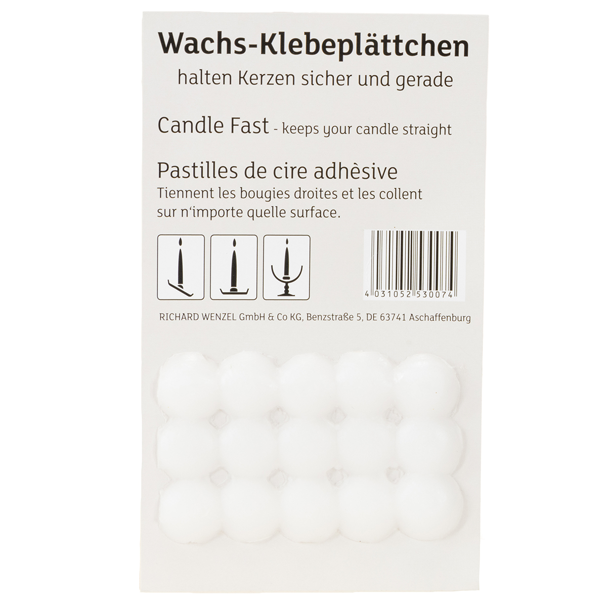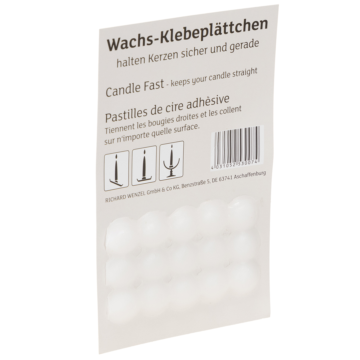 En blanding af voks og klæbevoks sikrer, at voksklæbepladerne giver et særligt sikkert hold. De små, runde tallerkener er derfor en yderst praktisk hjælper, når du skal skabe fantasifulde lysdekorationer.